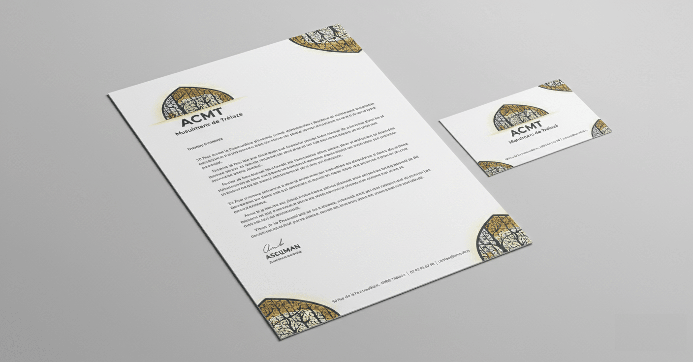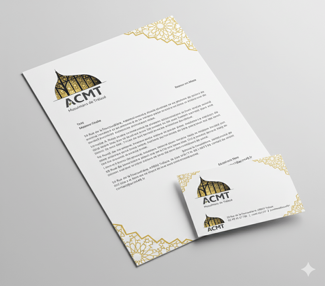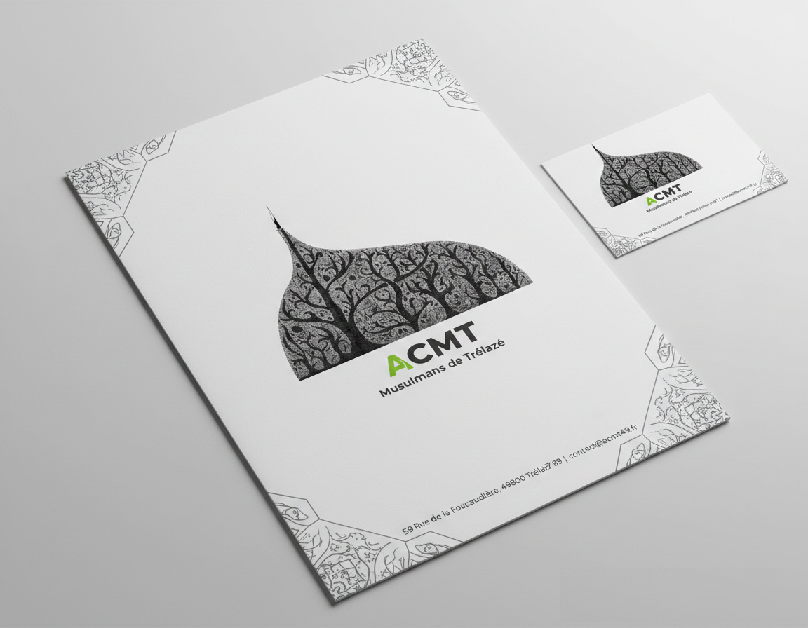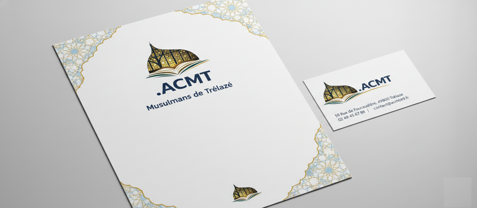 En résumé : Ce logo est une synthèse visuelle entre hier et aujourd’hui. En utilisant la texture de l’ardoise locale pour soutenir une structure de lumière, il affirme que l’ACMT est une institution solidement enracinée dans le sol de Trélazé, tout en restant un phare spirituel et culturel moderne et ouvert.