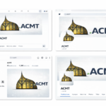 Le logo ACMT s’inspire d’une silhouette architecturale stylisée, directement évocatrice d’une façade de lieu de culte contemporain.