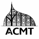 Le logo ACMT s’inspire de deux façades architecturales stylisées, évoquant des lieux de rassemblement et de transmission.