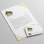La silhouette architecturale stylisée évoque un lieu de rassemblement et de spiritualité, inspiré de l’architecture islamique contemporaine, sans figuration excessive.