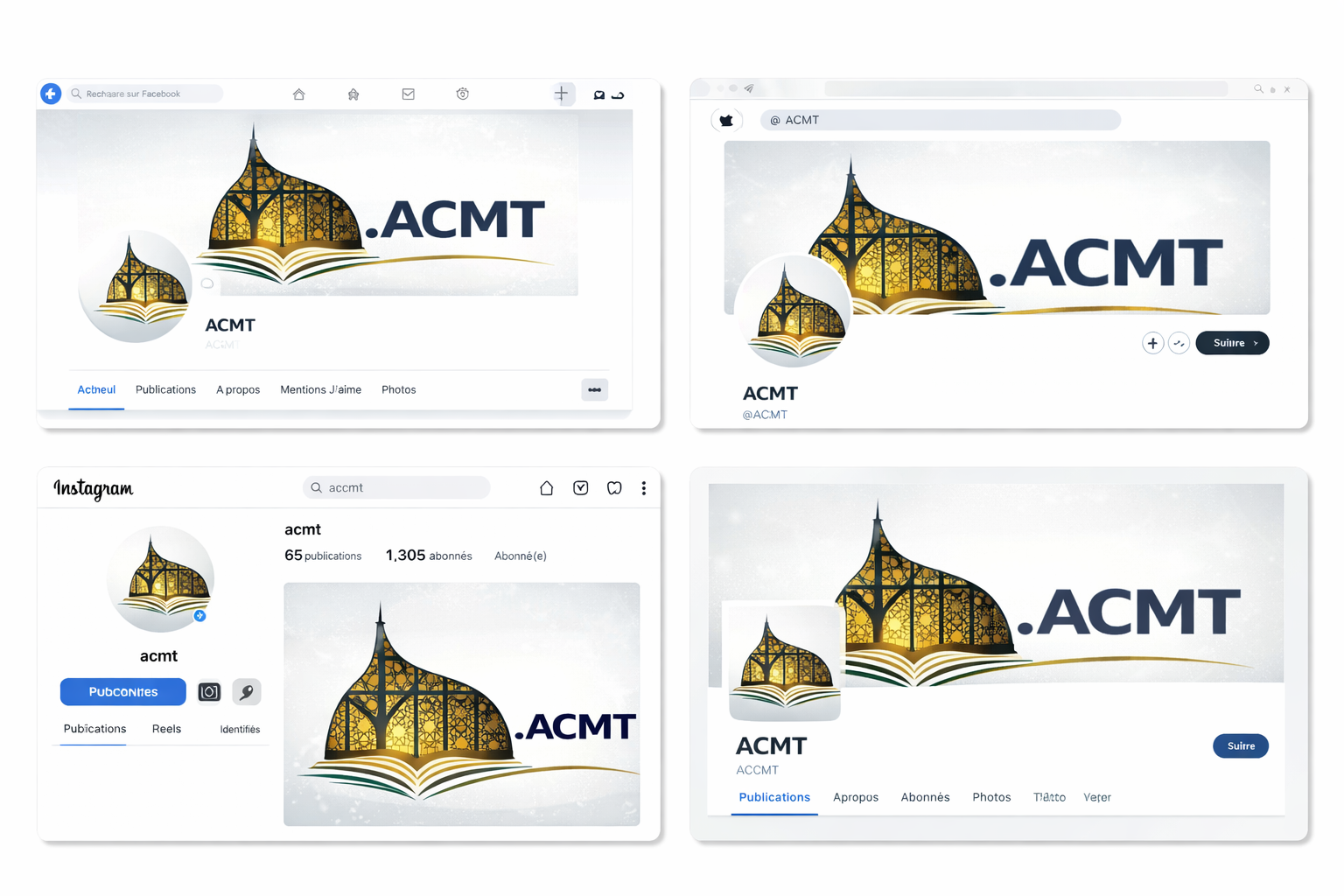 Le logo ACMT est né de la volonté de représenter une identité spirituelle, culturelle et locale, tout en adoptant une écriture graphique moderne, lisible et institutionnelle.