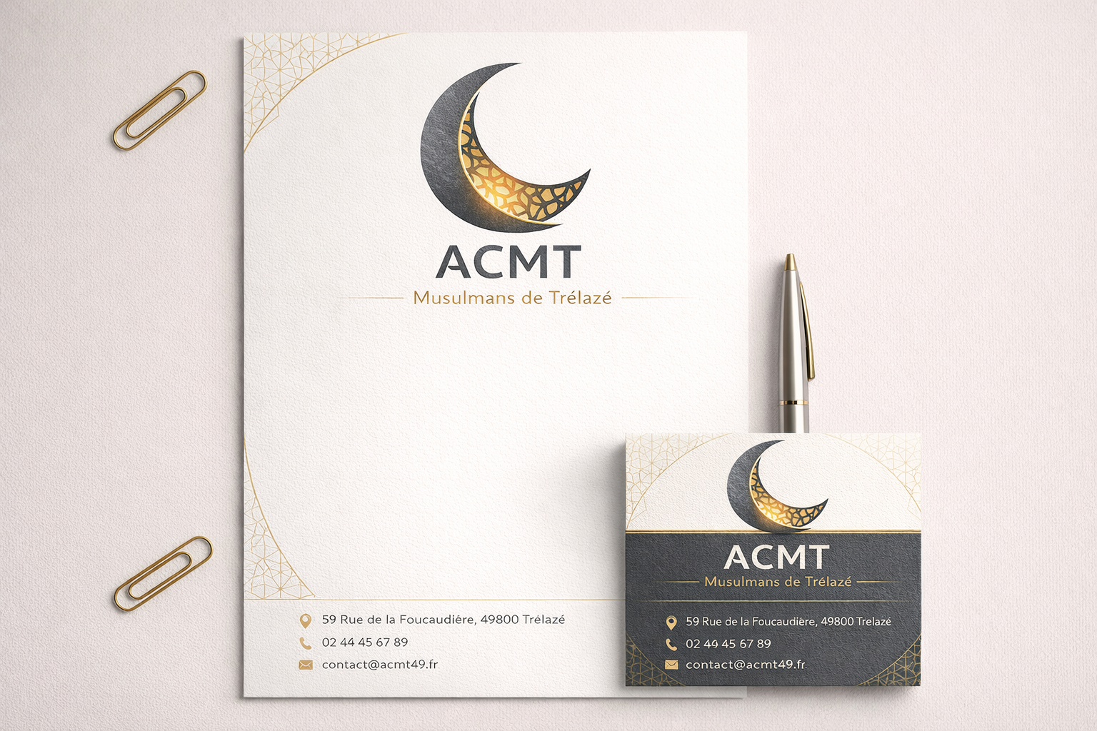 Le logo ACMT s’appuie sur le croissant, symbole culturel et spirituel largement associé à l’islam, traité ici de manière moderne et épurée.