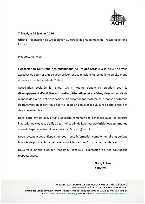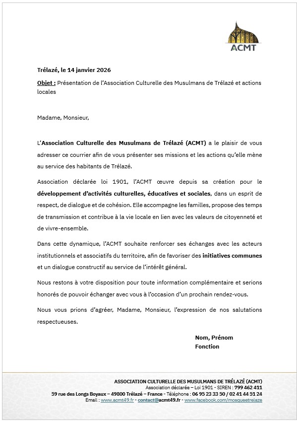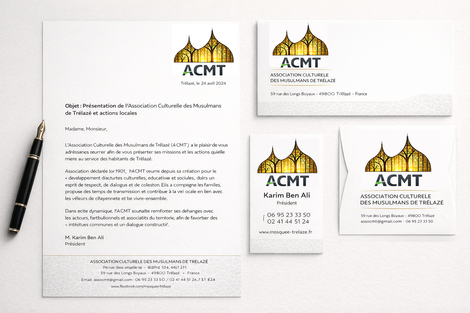 Le logo ACMT est né de la volonté de représenter une identité musulmane à la fois culturelle, éducative et institutionnelle, ancrée localement à Trélazé.